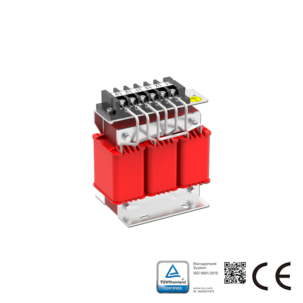 La serie SKS-ACL de Reactores de Línea se coloca en serie con equipos eléctricos para introducir una impedancia controlada específica en el circuito de CA. Esta serie se aplica en el lado de entrada de los variadores de CA para suprimir la tensión de irrupción, reducir la corriente de irrupción y de pico, mejorar el factor de potencia real, restringir los armónicos de la red y mejorar la forma de onda de la corriente de salida. El Reactor de Línea de CA también se conoce como Reactor de Entrada o Bobina de CA.