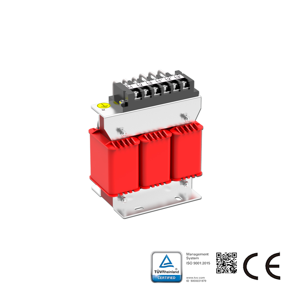 La serie SKS-ACL de Reactores de Línea se coloca en serie con equipos eléctricos para introducir una impedancia controlada específica en el circuito de CA. Esta serie se aplica en el lado de entrada de los variadores de CA para suprimir la tensión de irrupción, reducir la corriente de irrupción y de pico, mejorar el factor de potencia real, restringir los armónicos de la red y mejorar la forma de onda de la corriente de salida. El Reactor de Línea de CA también se conoce como Reactor de Entrada o Bobina de CA.