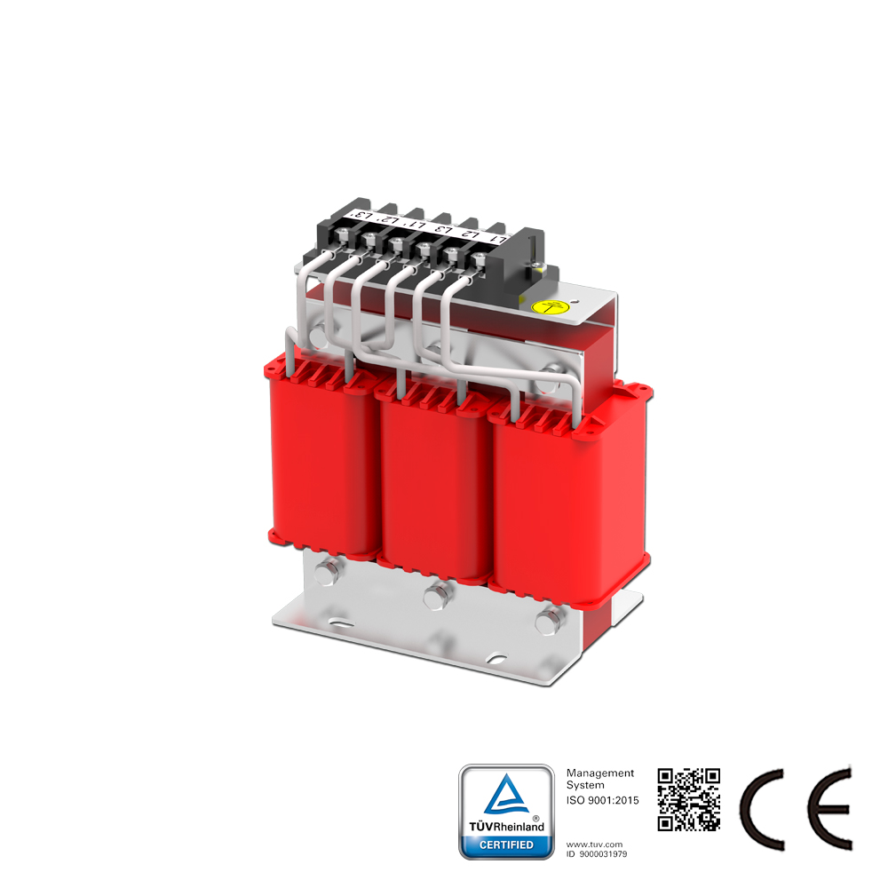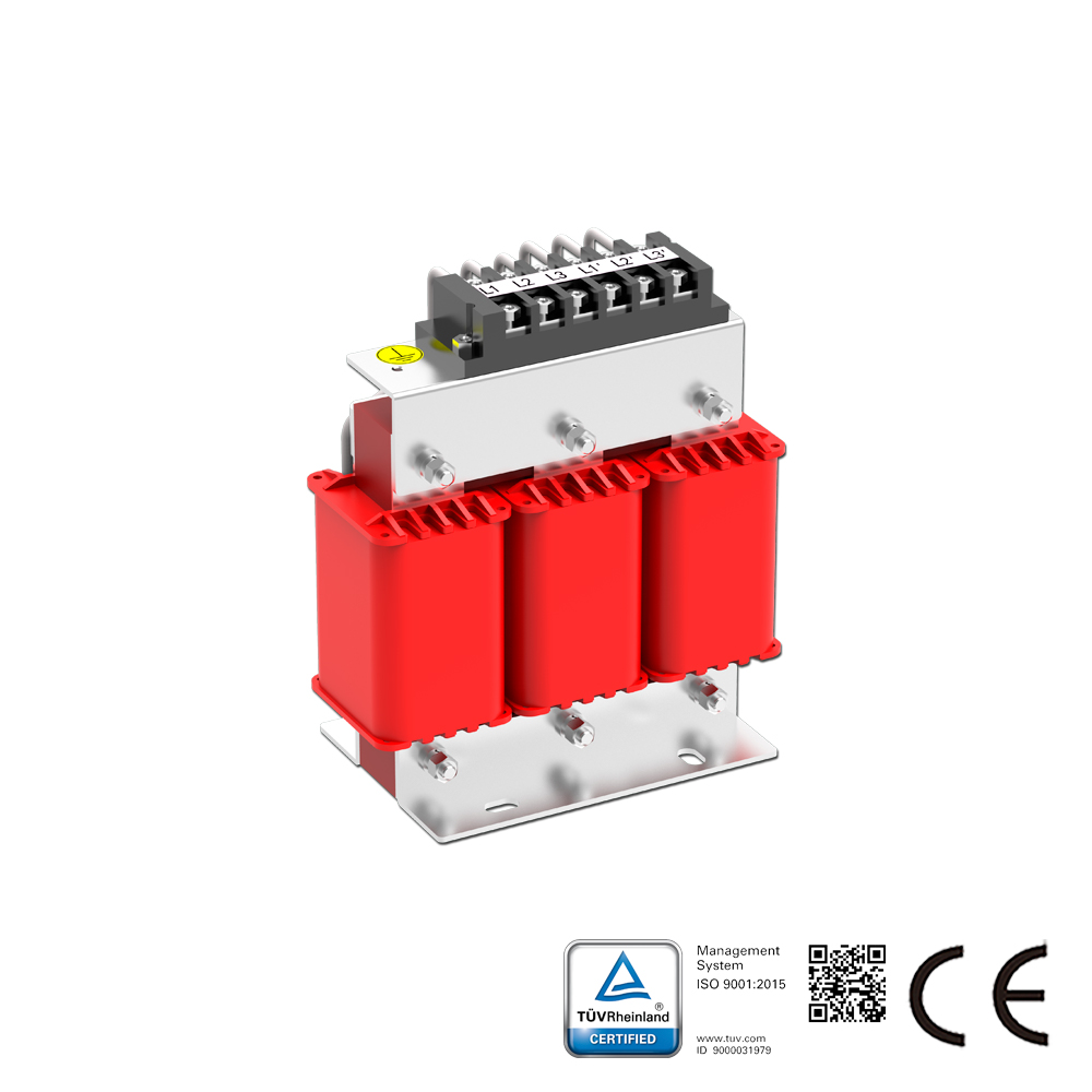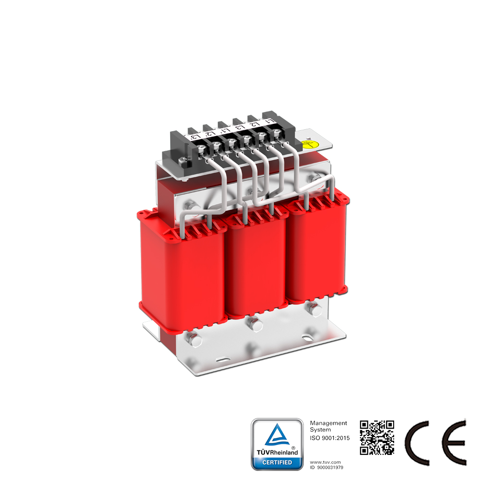 La serie SKS-ACL de Reactores de Línea se coloca en serie con equipos eléctricos para introducir una impedancia controlada específica en el circuito de CA. Esta serie se aplica en el lado de entrada de los variadores de CA para suprimir la tensión de irrupción, reducir la corriente de irrupción y de pico, mejorar el factor de potencia real, restringir los armónicos de la red y mejorar la forma de onda de la corriente de salida. El Reactor de Línea de CA también se conoce como Reactor de Entrada o Bobina de CA.