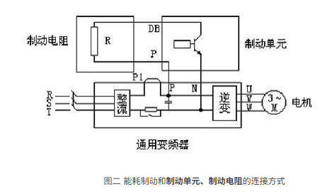The method used in dynamic braking involves adding a discharging resistor on the DC side of the VFD to consume the regenerative energy through a power resistor, thereby achieving braking (as shown in Figure). This is the most direct way to handle regenerative energy, where the energy is dissipated as heat through a dedicated dynamic braking circuit in the resistor. Hence, it is also referred to as “resistor braking,” and it consists of two components: the braking unit and the braking resistor.