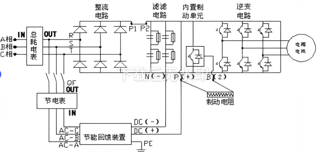 1.4. When the DC bus voltage drops to the stop threshold of the regenerative unit, the inverter bridge stops working, and the feedback process is interrupted. If the bus voltage rises again, the above process is repeated, always stabilizing the DC bus voltage within a safe range.