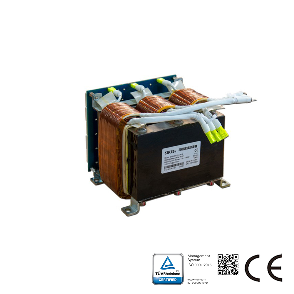 Descripción del Filtro de Armónicos: El filtro de armónicos pasivo de Sikes está diseñado para prácticamente cualquier tipo de aplicación electrónica con rectificadores de entrada de seis pulsos. El filtro puede reducir eficazmente la distorsión de corriente armónica hasta el nivel requerido. Aplicación típica: fuentes de alimentación trifásicas no lineales donde el riesgo potencial es alto debido a la sobrecarga térmica y eléctrica causada por las corrientes armónicas. (THDi