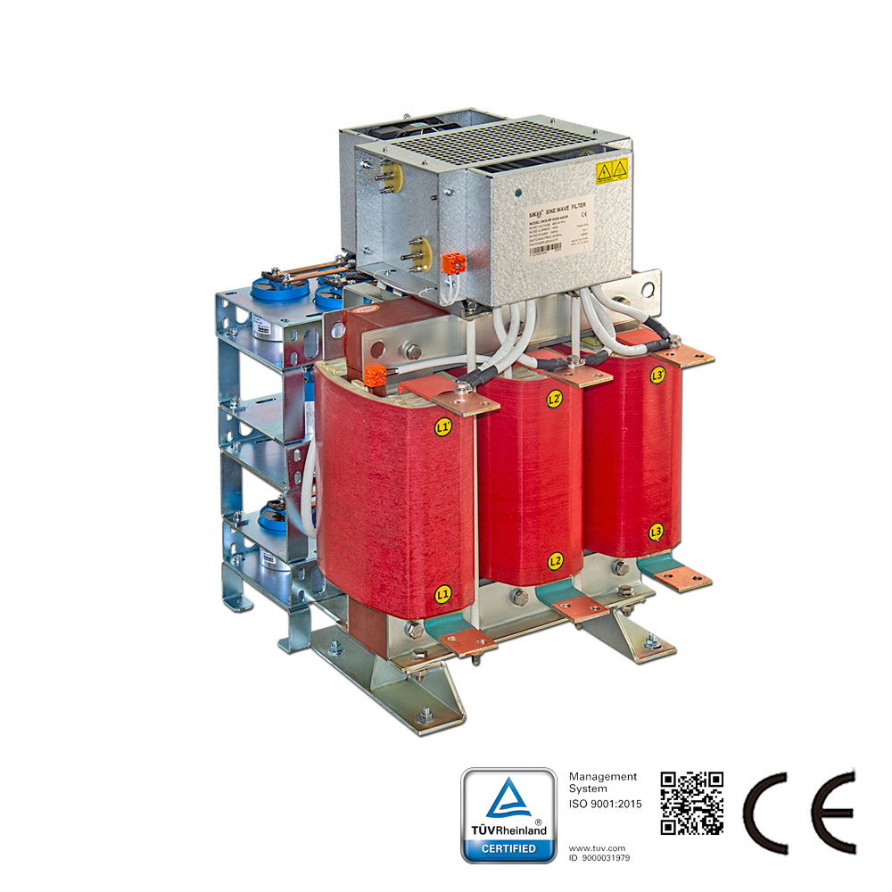 Los filtros de onda sinusoidal Sikes para varios servomotores de sistemas de variadores de velocidad (especialmente para inversores o fuentes de alimentación conmutadas), están diseñados para cambiar la tensión de salida PWM del inversor y generar una tensión casi sinusoidal. La serie pasiva está destinada para su uso en redes de 380v-480v.
