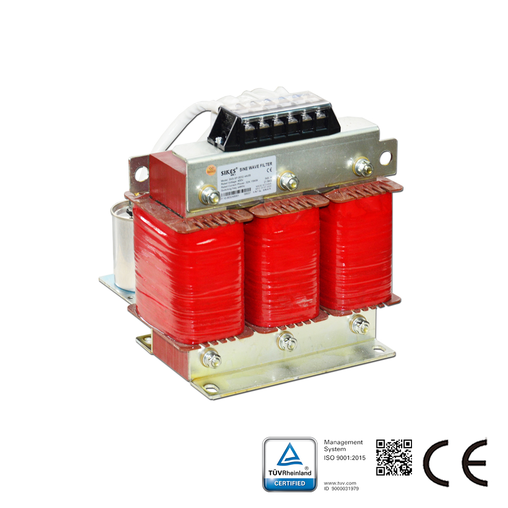 Los filtros de onda sinusoidal Sikes para varios servomotores de sistemas de variadores de velocidad (especialmente para inversores o fuentes de alimentación conmutadas), están diseñados para cambiar la tensión de salida PWM del inversor y generar una tensión casi sinusoidal. La serie pasiva está destinada para su uso en redes de 380v-480v.