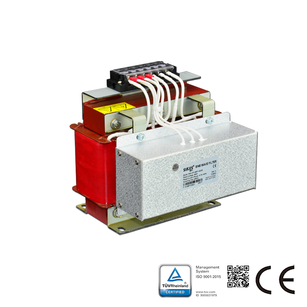 Los filtros de onda sinusoidal Sikes para varios servomotores de sistemas de variadores de velocidad (especialmente para inversores o fuentes de alimentación conmutadas), están diseñados para cambiar la tensión de salida PWM del inversor y generar una tensión casi sinusoidal. La serie pasiva está destinada para su uso en redes de 380v-480v.