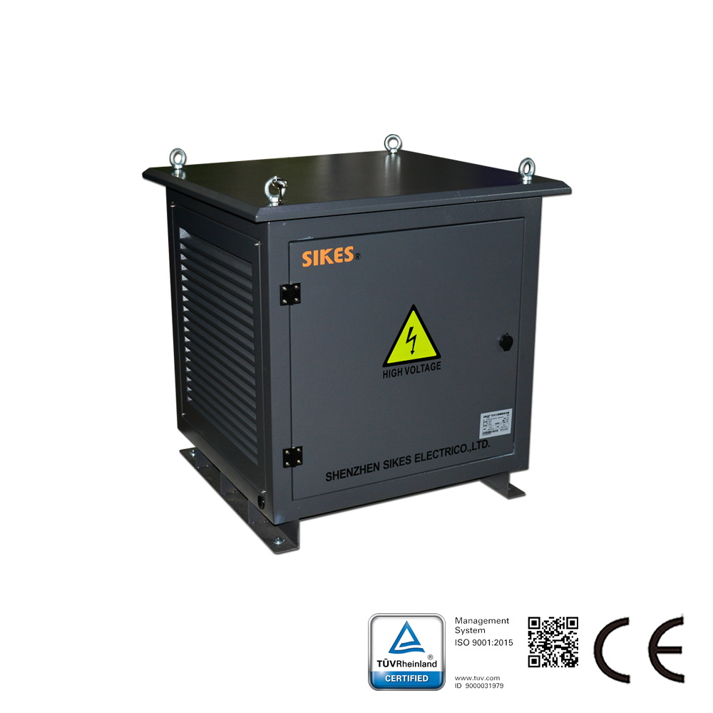 El transformador de aislamiento SGGF se utiliza para resolver los problemas de la red eléctrica causados por la generación de energía fotovoltaica, como los armónicos, el parpadeo, la polarización magnética de CC y la sobretensión. Los transformadores se emplean normalmente entre la red eléctrica y el inversor conectado a la red, lo que permite aislar el inversor y devolver la energía a la red.