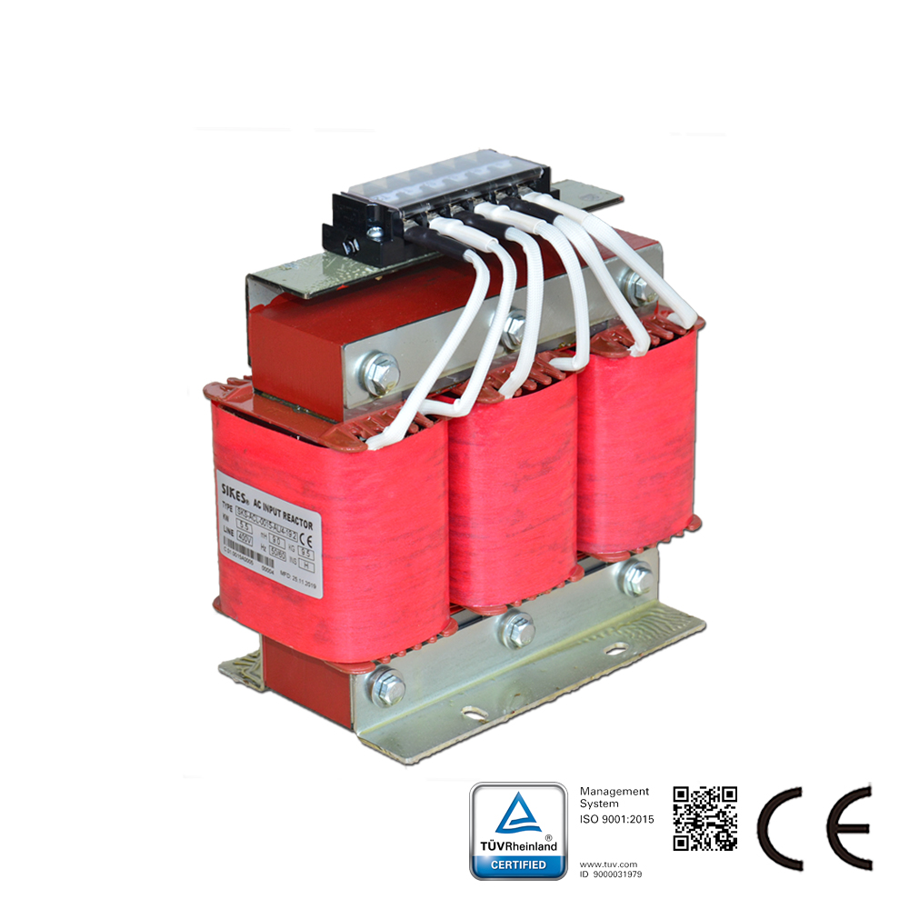 La serie SKS-ACL de Reactores de Línea se coloca en serie con equipos eléctricos para introducir una impedancia controlada específica en el circuito de CA. Esta serie se aplica en el lado de entrada de los variadores de CA para suprimir la tensión de irrupción, reducir la corriente de irrupción y de pico, mejorar el factor de potencia real, restringir los armónicos de la red y mejorar la forma de onda de la corriente de salida. El Reactor de Línea de CA también se conoce como Reactor de Entrada o Bobina de CA.