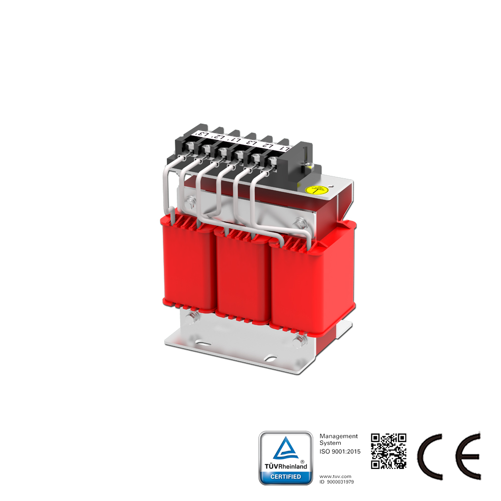La serie SKS-ACL de Reactores de Línea se coloca en serie con equipos eléctricos para introducir una impedancia controlada específica en el circuito de CA. Esta serie se aplica en el lado de entrada de los variadores de CA para suprimir la tensión de irrupción, reducir la corriente de irrupción y de pico, mejorar el factor de potencia real, restringir los armónicos de la red y mejorar la forma de onda de la corriente de salida. El Reactor de Línea de CA también se conoce como Reactor de Entrada o Bobina de CA.