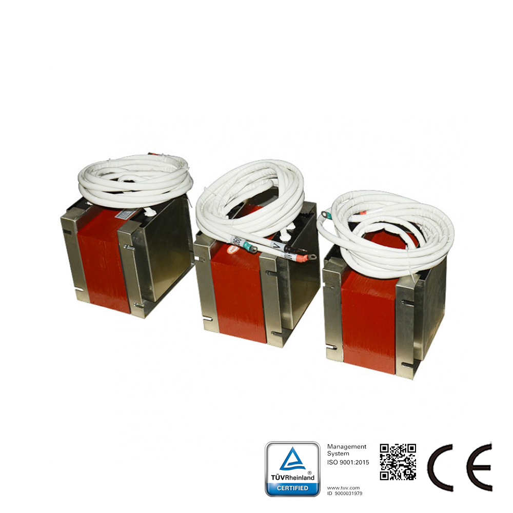 El núcleo del autotransformador impermeable se construye mediante el apilamiento de láminas de acero al silicio de alta calidad laminado en frío, garantizando alta fiabilidad, tamaño compacto, peso ligero y rentabilidad. Los devanados emplean materiales aislantes compuestos de alto rendimiento y resistencia a altas temperaturas, combinados con tecnología de bobinado en carrete, ofreciendo fuerte resistencia electromagnética, acabado ordenado y apariencia estética. Según la clase de aislamiento, la unidad completa se impregna con barniz aislante de grados correspondientes, reduciendo eficazmente el ruido del transformador, minimizando la fuga magnética, asegurando un rendimiento estable y mitigando el impacto de la salpicadura salina, el moho y otros factores ambientales. Los devanados están completamente encapsulados, permitiendo operación prolongada bajo el agua.