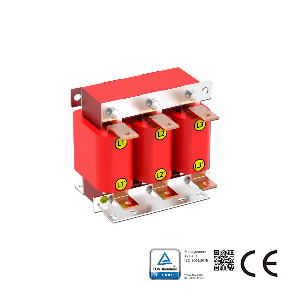 La serie SKS-ACL de Reactores de Línea se coloca en serie con equipos eléctricos para introducir una impedancia controlada específica en el circuito de CA. Esta serie se aplica en el lado de entrada de los variadores de CA para suprimir la tensión de irrupción, reducir la corriente de irrupción y de pico, mejorar el factor de potencia real, restringir los armónicos de la red y mejorar la forma de onda de la corriente de salida. El Reactor de Línea de CA también se conoce como Reactor de Entrada o Bobina de CA.