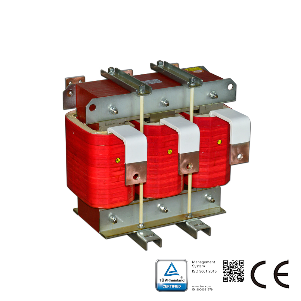 La serie SKS-ACL de Reactores de Línea se coloca en serie con equipos eléctricos para introducir una impedancia controlada específica en el circuito de CA. Esta serie se aplica en el lado de entrada de los variadores de CA para suprimir la tensión de irrupción, reducir la corriente de irrupción y de pico, mejorar el factor de potencia real, restringir los armónicos de la red y mejorar la forma de onda de la corriente de salida. El Reactor de Línea de CA también se conoce como Reactor de Entrada o Bobina de CA.