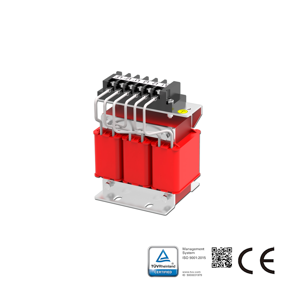 La serie SKS-OCL de Reactores de Carga se instala en serie con equipos eléctricos para introducir una impedancia controlada específica en el circuito de CA. Esta serie se aplica en el lado de salida de los variadores de CA para suprimir la tensión de sobretensión, reducir la corriente de arranque y de pico, mejorar el factor de potencia real, limitar los armónicos de la red y mejorar la forma de onda de la corriente de salida. El Reactor de Línea también se conoce como Reactor de Salida.